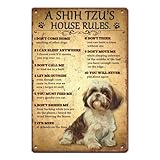 - Diseño de letrero de metal con reglas de Shih Tzu: 1 letrero de metal hecho de hierro diseñado en temas de "Shih Tzu Rules", una bonita imagen de Shih Tzu y una breve descripción de las 10 reglas.