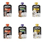 - 🥛 6 Yogures (2 naturales, 2 de pollo y 2 de salmón) para Perros de 115 grs cada uno - No precisa frío - Tapón antiatragantamiento